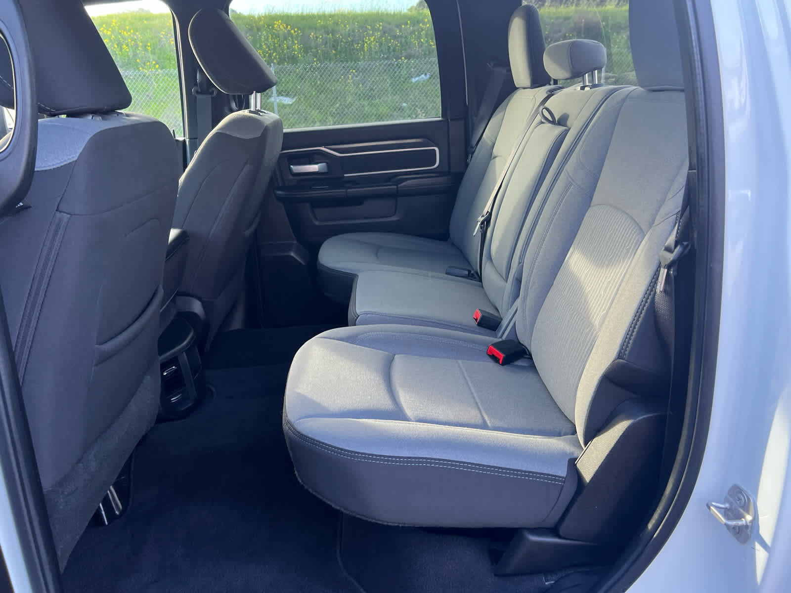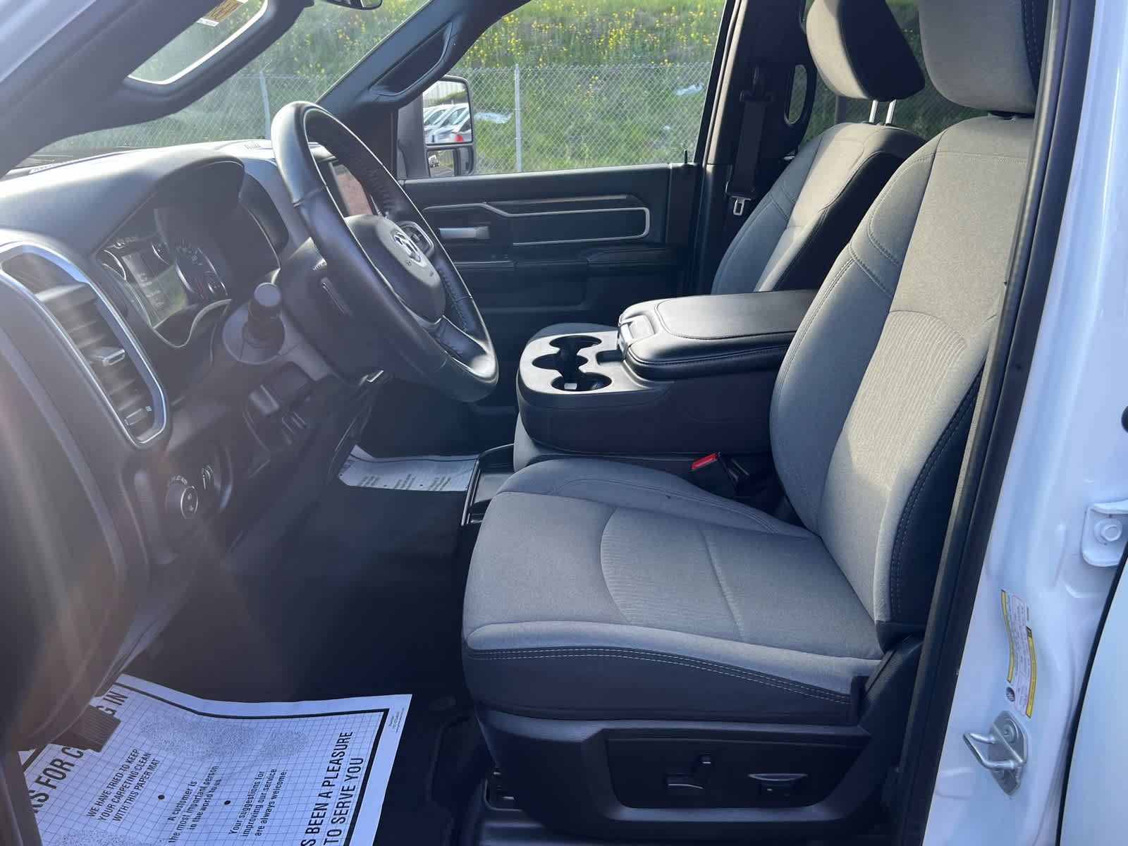Storage Tray, Rear 60/40 Folding Seat, Front Armrest w/Cupholders, Remote USB Port - Charge Only, Front Center Seat Cushion Storage, Manual Adjust 4-Way Front Passenger Seat, Power Adjust 8-Way Driver Seat, Front Seat Back Map Pockets, Power 2-Way Driver Lumbar Adjust, CHROME FLAT CAB-LENGTH SIDE STEPS, Google Android Auto®, For Details, Visit DriveUconnect.com, For More Info, Call 800-643-2112, Leather Wrapped Steering Wheel, Rear Dome w/On/Off Switch Lamp, Front Fog Lamps, Glove Box Lamp, Auto Power-Folding Mirrors, Footwell Courtesy Lamp, 4G LTE Wi-Fi Hot Spot, Mirror Running Lights, Radio: Uconnect 5 W w/8.4" Display, 8.4" Touchscreen Display, Foam Bottle Insert (Door Trim Panel), Wheels: 18" x 8.0" Polished Aluminum, Apple CarPlay®, Big Horn IP Badge, Power Adjustable Convex Aux Mirrors, Forward & Reverse Utility Lights, Locking Lower Glove Box, Selectable Tire Fill Alert, SiriusXM Satellite Radio, Power Heated Fold Telescope Mirrors, Exterior Mirrors w/Supplemental Signals, Steering Wheel Mounted Audio Controls, Exterior Mirrors Courtesy Lamps, Dual Glove Boxes, 2nd Row In Floor, (STD), (STD). Ram Big Horn with Bright White Clearcoat exterior and Diesel Gray/Black interior features a 8 Cylinder Engine with 410 HP at 5600 RPM*.