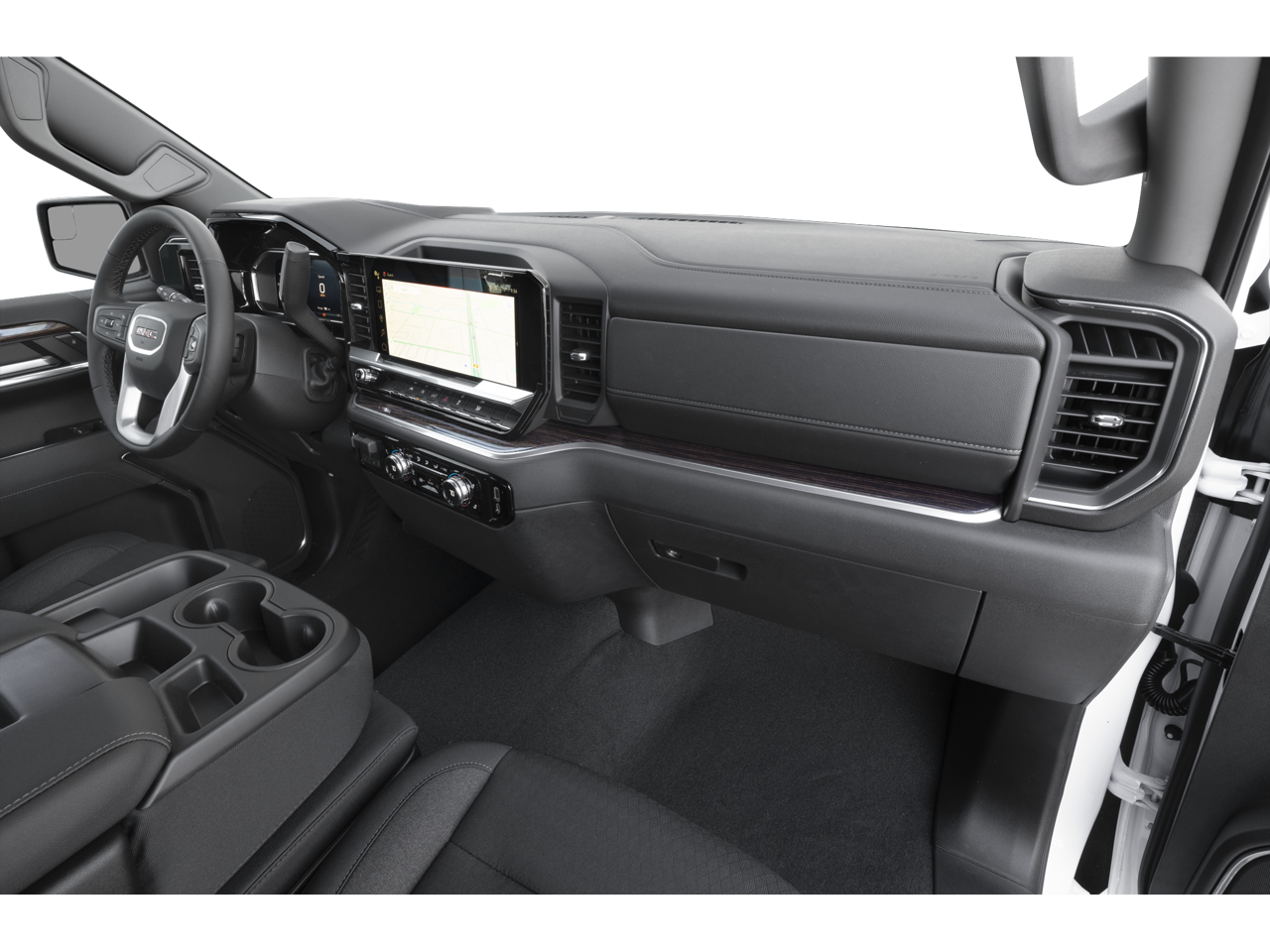 AUDIO SYSTEM, 13.4" DIAGONAL PREMIUM GMC INFOTAINMENT SYSTEM WITH GOOGLE BUILT IN APPS SUCH AS NAVIGATION AND VOICE ASSISTANCE, INCLUDES COLOR TOUCH-SCREEN, MULTI-TOUCH DISPLAY, AM/FM STEREO Bluetooth® streaming audio for music and most phones; featuring wireless Android Auto® and Apple CarPlay® capability for compatible phones (STD), ENGINE, 5.3L ECOTEC3 V8 (355 hp [265 kW] @ 5600 rpm, 383 lb-ft of torque [518 Nm] @ 4100 rpm); featuring Dynamic Fuel Management (STD), TRANSMISSION, 10-SPEED AUTOMATIC, (COLUMN SHIFTER) ELECTRONICALLY CONTROLLED with overdrive and tow/haul mode. Includes Cruise Grade Braking and Powertrain Grade Braking (STD). GMC SLT with Summit White exterior and Jet Black interior features a 8 Cylinder Engine with 355 HP at 5600 RPM*.